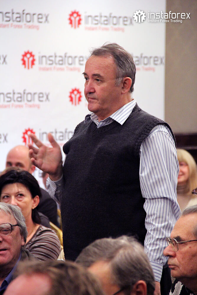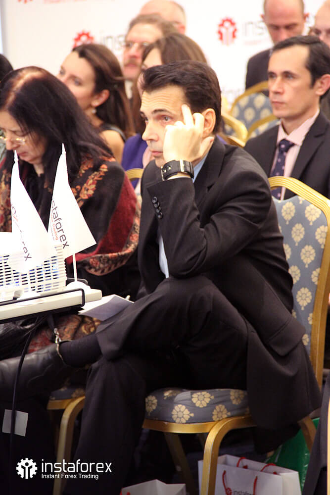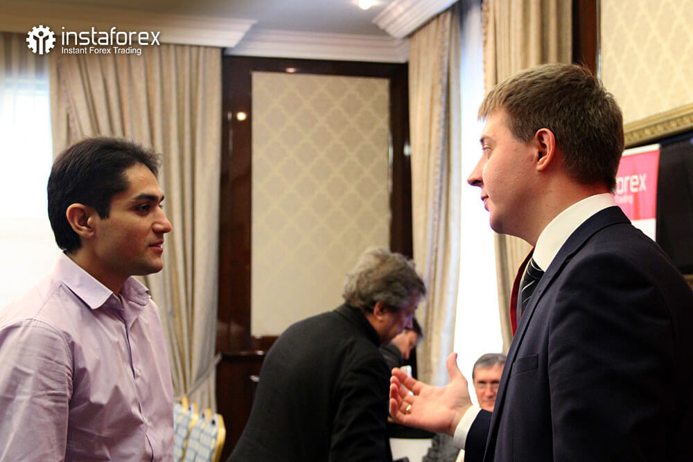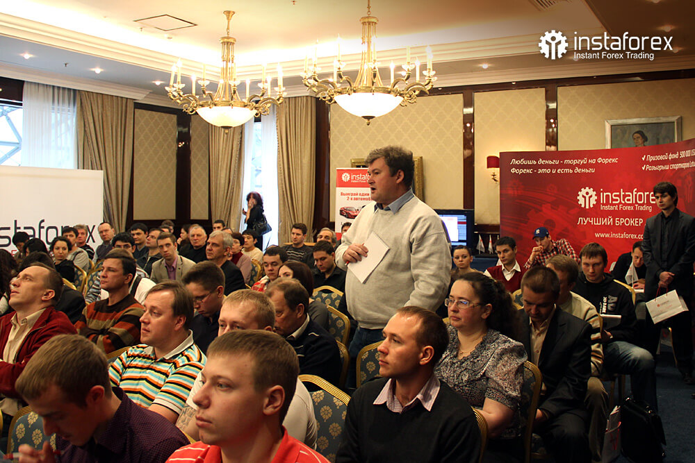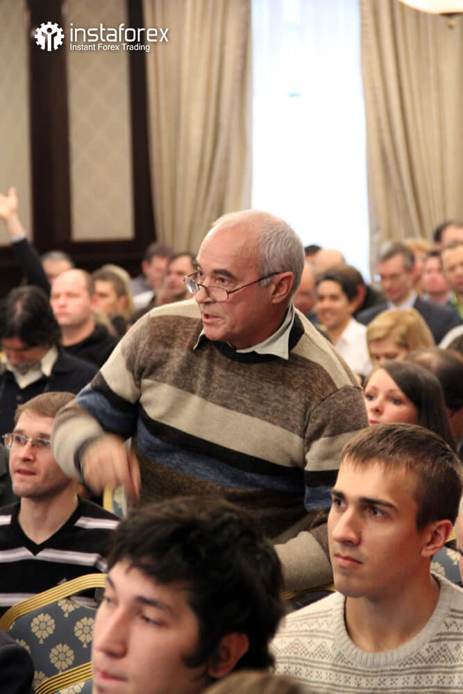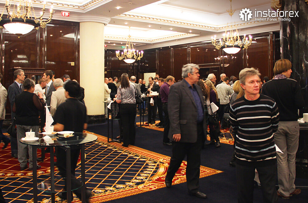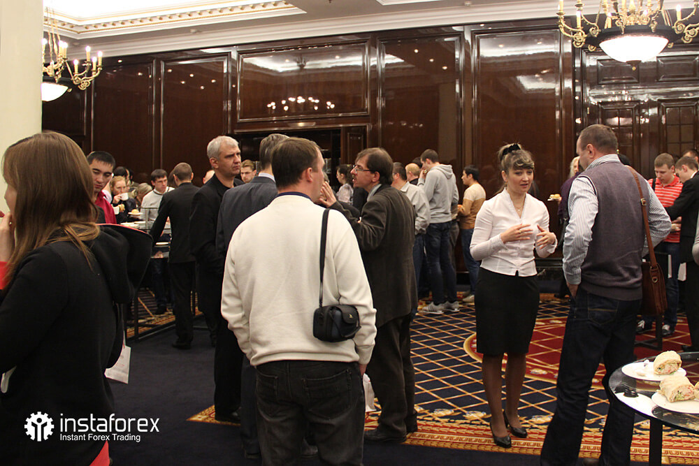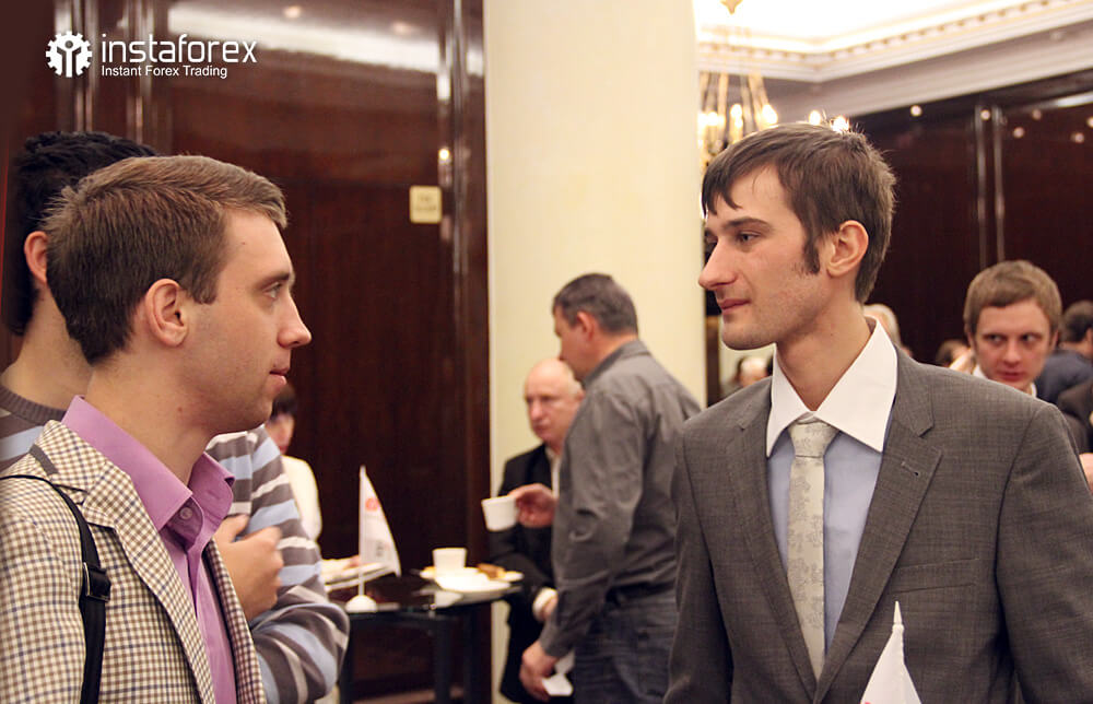 Самым долгожданным для большинства присутствующих было выступление аналитика Глеба Кабанова на тему: «Динамика рынка облигаций и ее влияние на рынок Forex». Наибольшее же количество вопросов было к Виктору Першикову – преподавателю образовательных курсов санкт-петербургского офиса компании ИнстаФорекс – по-поводу применения комплексного технического анализа Фибоначчи. Обсуждение докладов продолжалось даже во время бесплатных кофе-брейков от компании ИнстаФорекс.