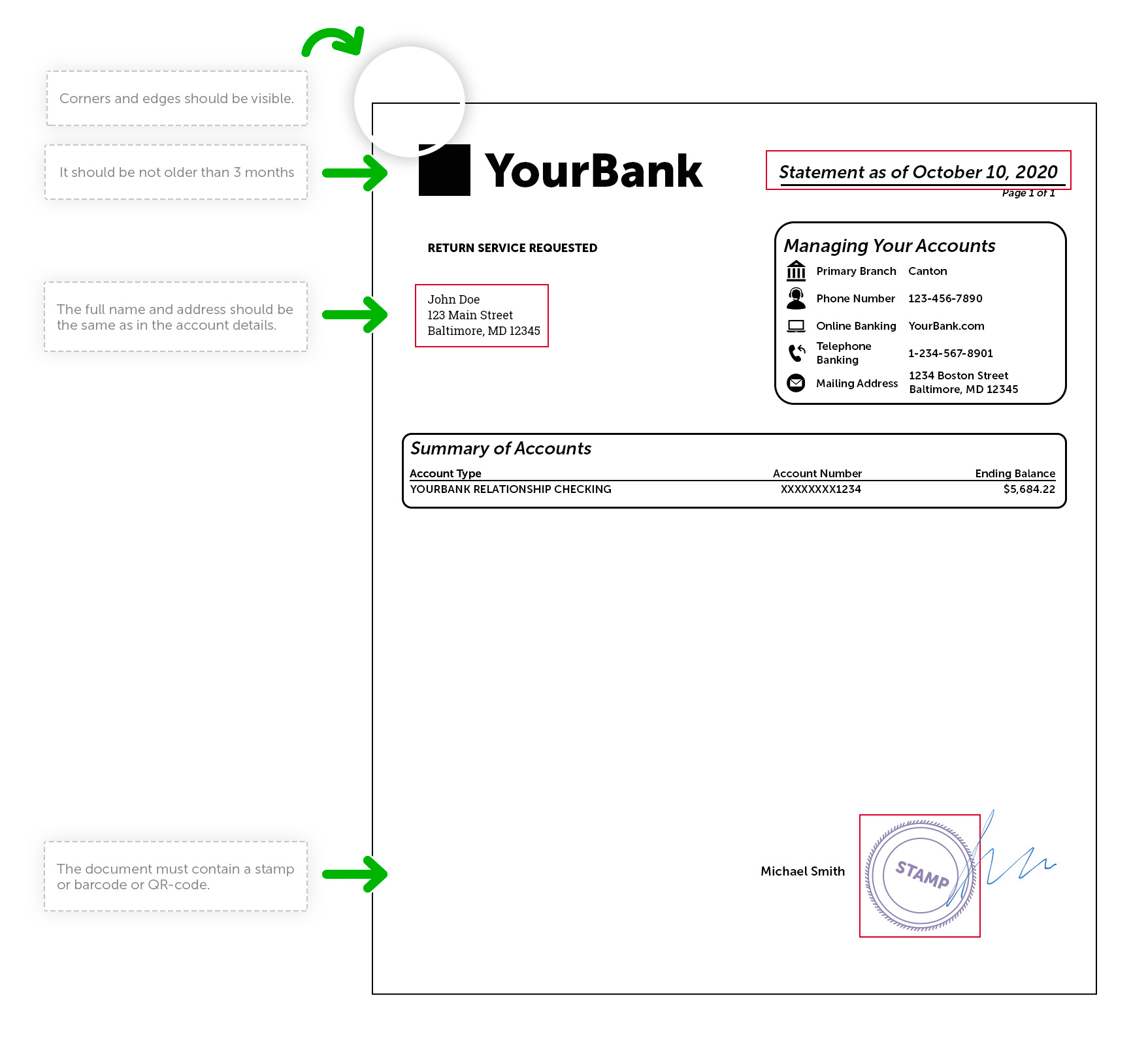 11. Electronic bank statements and electronic utility bills are not accepted for verification. Bank statements can be accepted if the document is signed and sealed by bank officials, utility bills should be uploaded with a payment slip. If there is a barcode or QR code on a utility bill, then you do not need to download a payment slip.